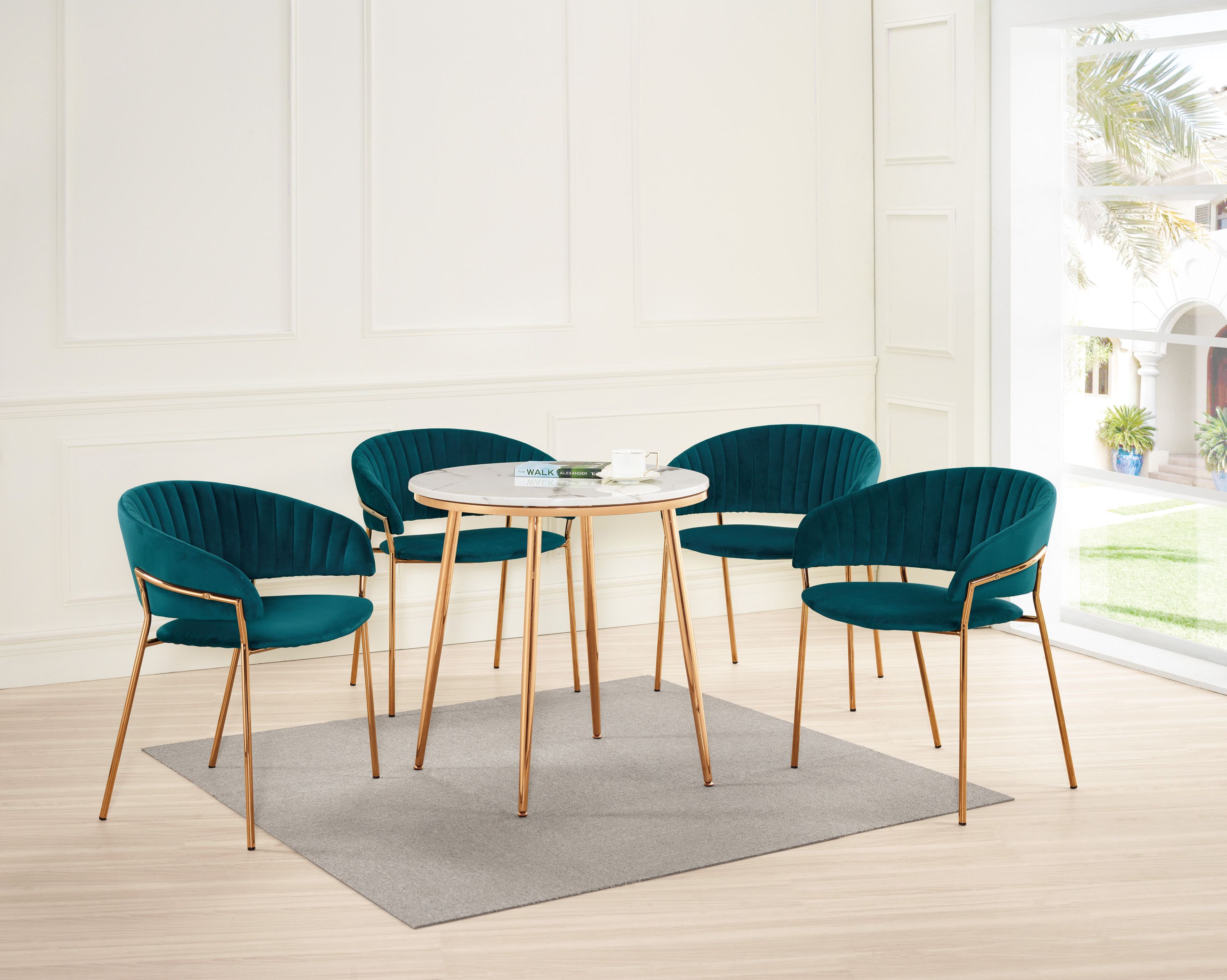 迪爾餐椅(藍絨布)(五金腳)