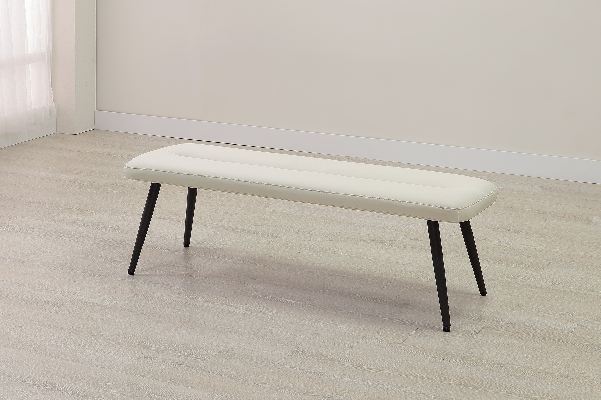 丹佐長凳-米白 產品尺寸: 寬140×深42×高47cm 餐椅材質:高密度泡綿+高級絲綿+採高級透氣皮革金屬腳架採黑色烤漆防鏽處理 #下單前 請先與客服人員確認庫存# ..