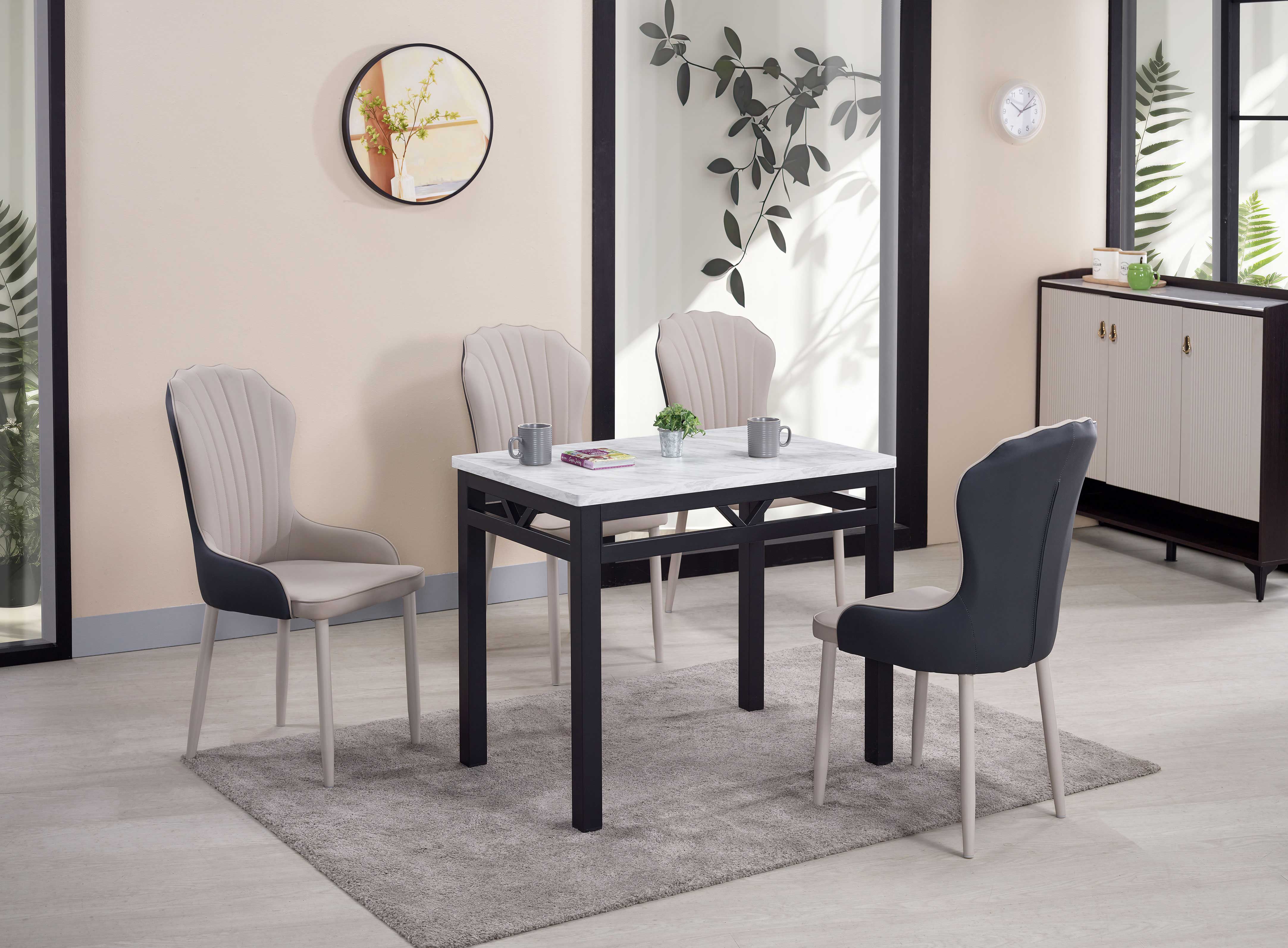 彤綾貓抓皮餐椅-淺灰色 產品尺寸: 寬48x深56x高94cm坐寬37x坐深42x坐高45cm 餐椅材質:高級貓抓皮革 + 高密度泡棉防鏽烤漆藕色鐵腳 #下單前 請先與客服人員確認庫存# ..